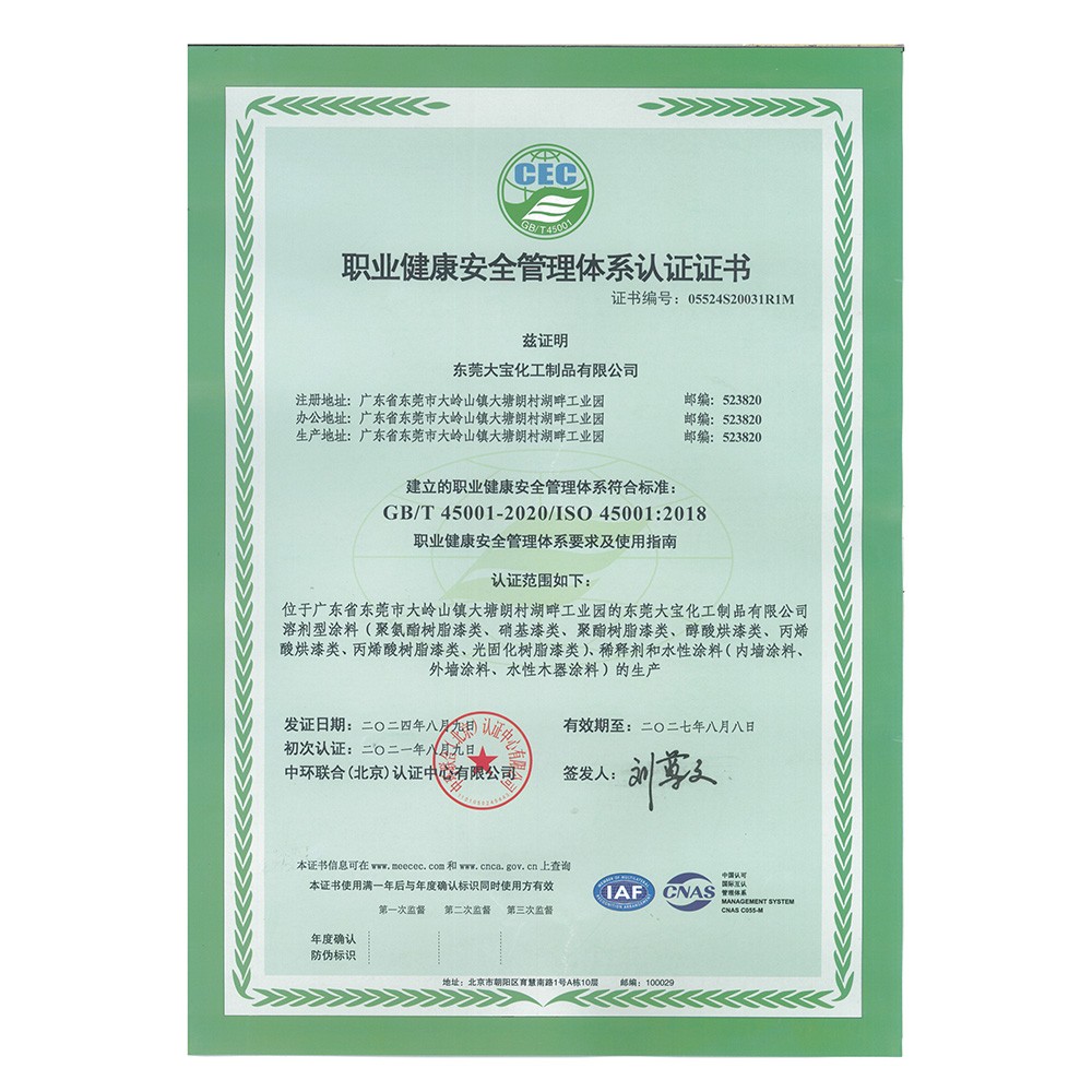 職業健康安全管理體系認證(東莞大寶)