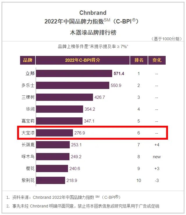 權威發布|大寶漆再次上榜2022年中國品牌力指數排行