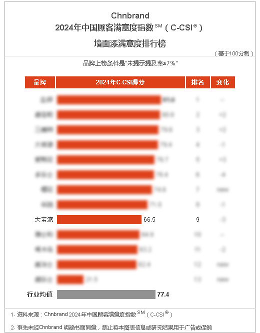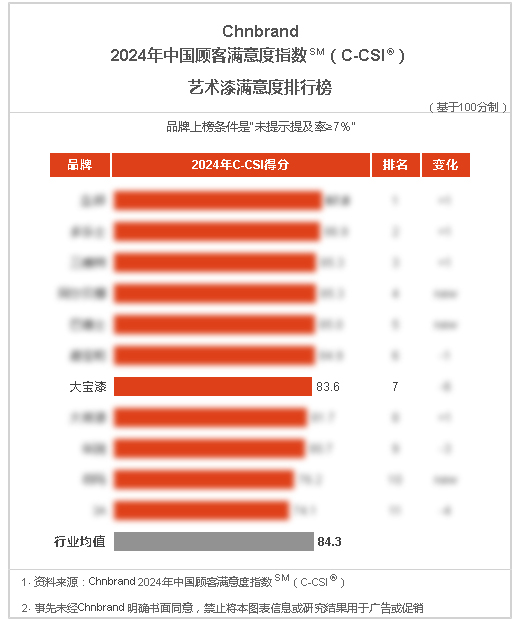 大寶漆再度上榜“墻面漆滿意度排行榜”、“木器漆滿意度排行榜”、“藝術漆滿意度排行榜”三項榜單,持續穩居行業顧客滿意度品牌前列,這一非凡成就不僅深刻體現了廣大消費者對大寶漆品牌的高度信賴與認可,更彰顯了其在市場中的堅實品牌韌性與卓越品質。
