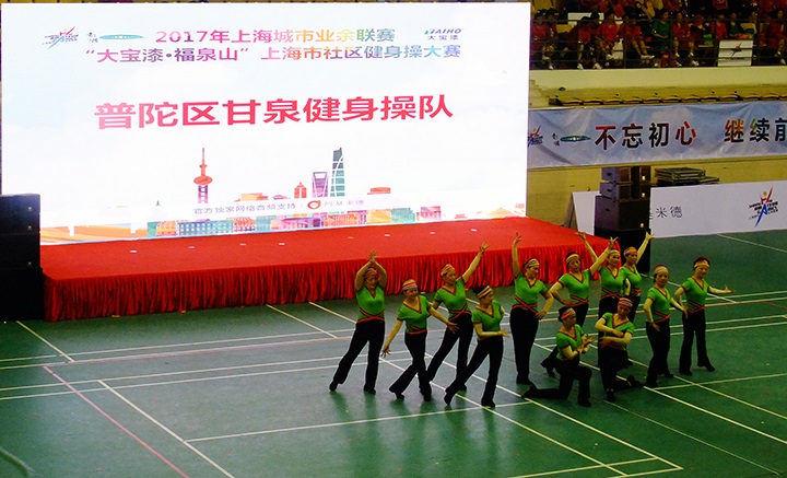 11月25日下午,由上海市社會體育管理中心、青浦區(qū)體育局、重固鎮(zhèn)人民政府主辦,上海大寶化工制品有限公司獨家冠名的大型市民健身操大賽——2017年“大寶漆·福泉山”杯在青浦體育館隆重舉行,來自上海市16個區(qū)22支隊伍共300多名選手匯聚一堂,在這一年一度,代表上海市社區(qū)健身操最高水平的大賽上,跳出活力,舞動申城。